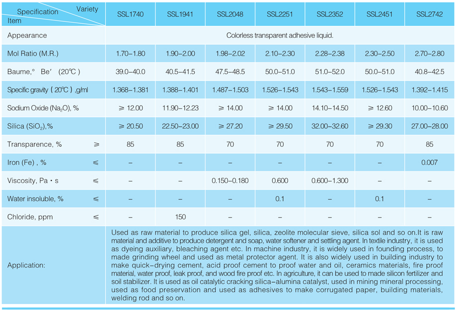 Properties: Its solution is alkaline. If add strong acids, weak acids and even electrolytes, it will hydrolyze and precipitate silica when it is heated or at room temperature.