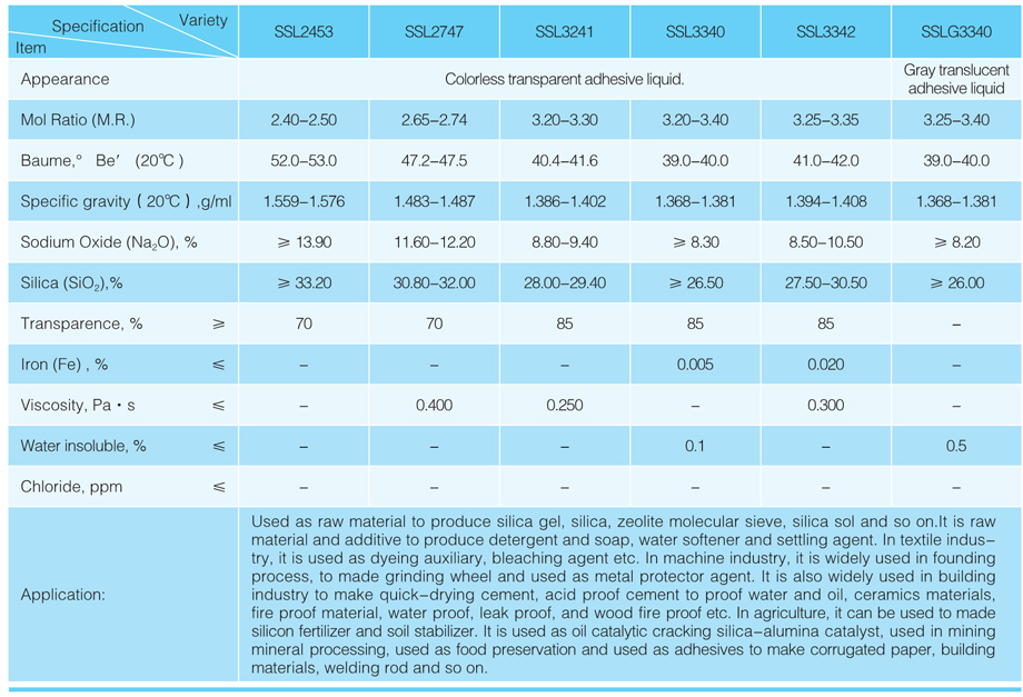 Standard compliance: GB/T 4209-2008"Industrial Sodium Silicate", Enterprise Standard Q-PG/l-02-06-J"Industrial Sodium Silicate".